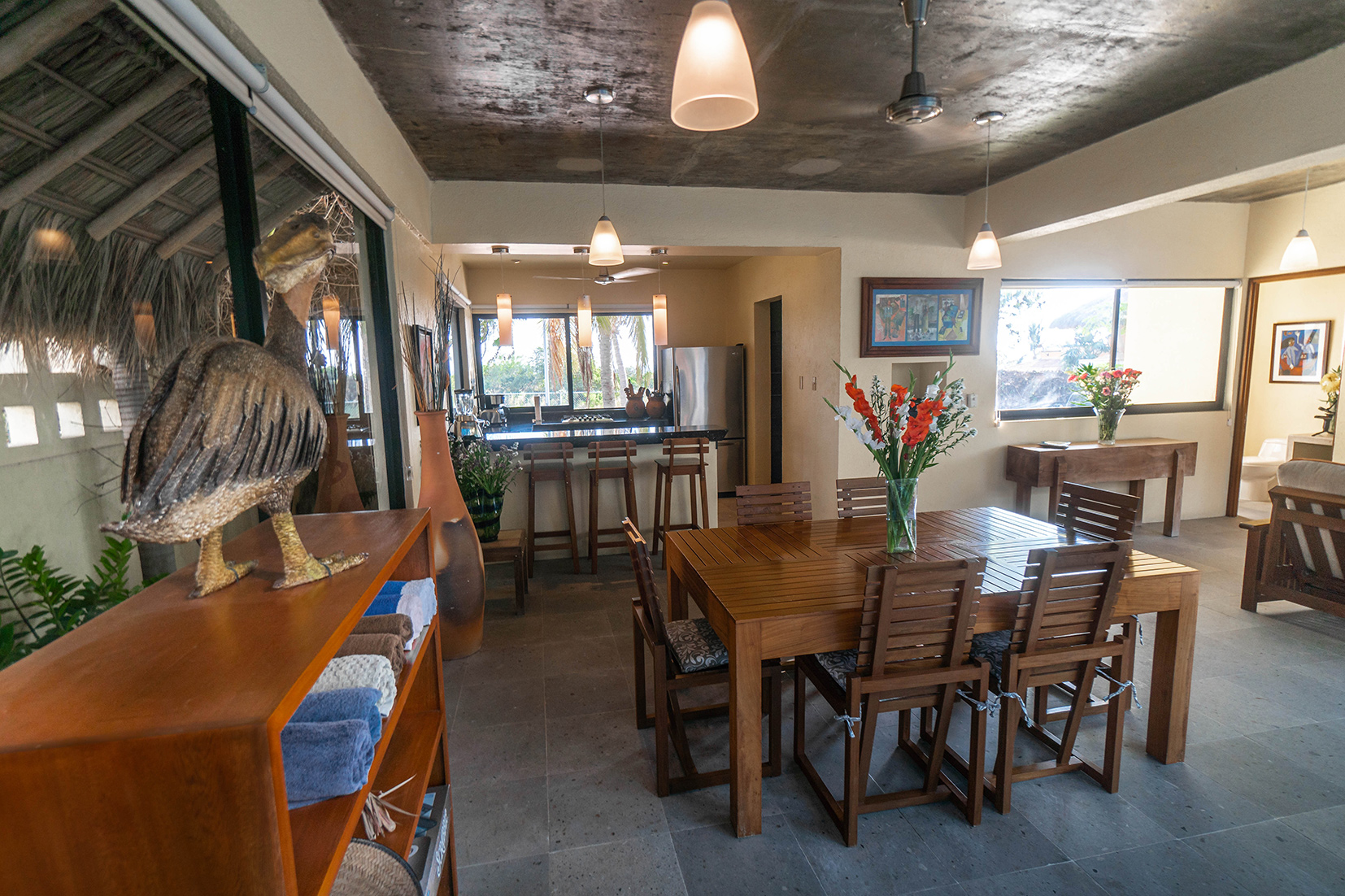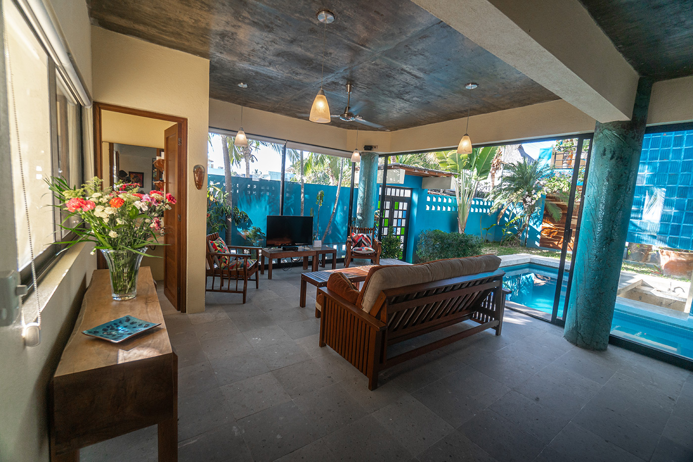 Casa Donna is located in the quiet, exclusive residential community of Carrizalillo. It is a three minute walk from excellent restaurants and shops. The best swimming beach in Puerto, Playa Carrizalillo, is a five minute walk away. Another beautiful swimming beach, Playa Manzanillo, is located on Puerto Angelito, just five minute walk beyond Playa Carrizalillo.