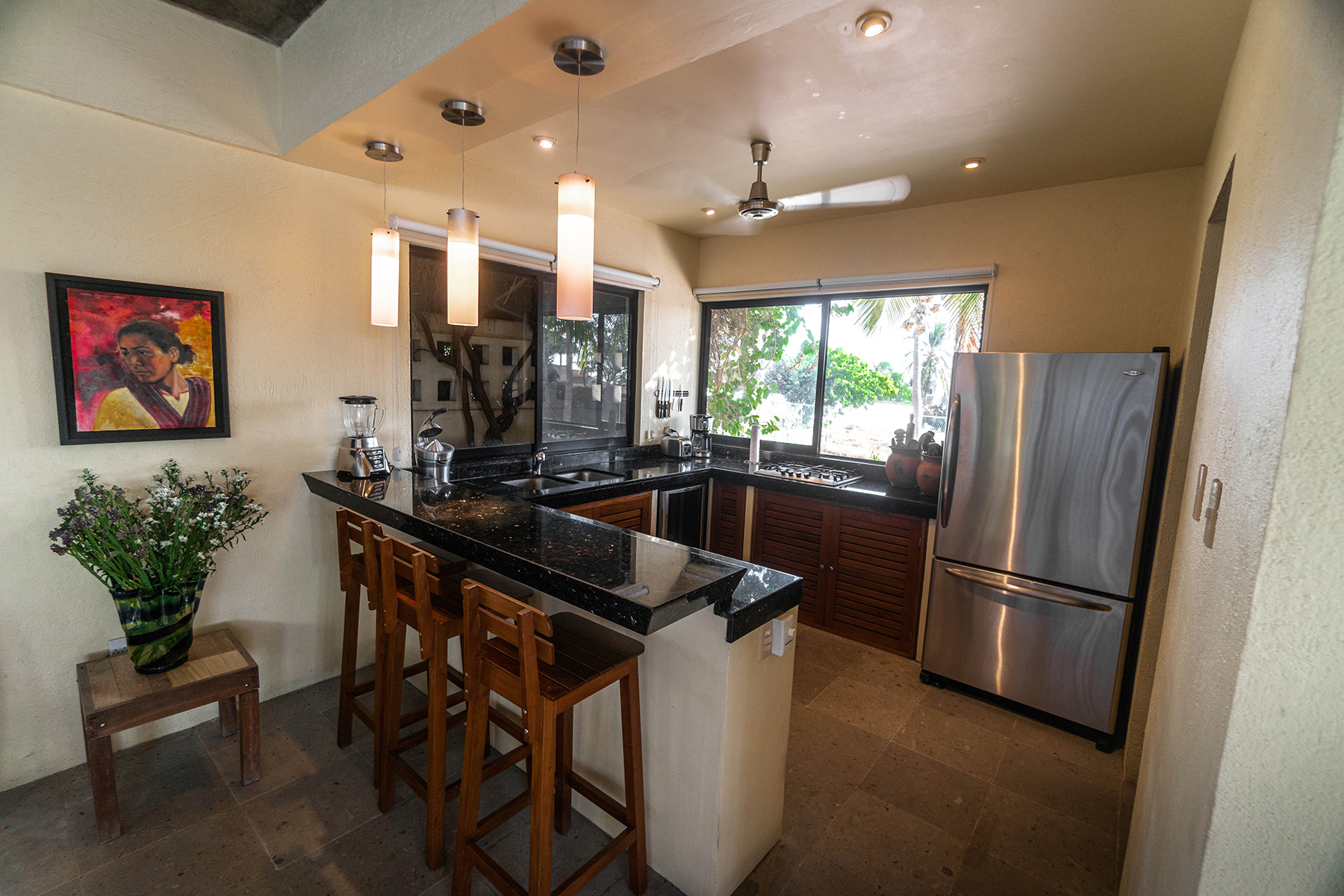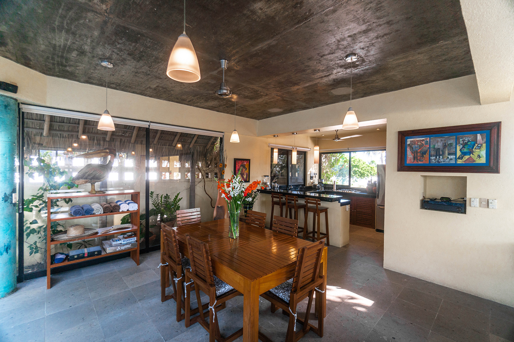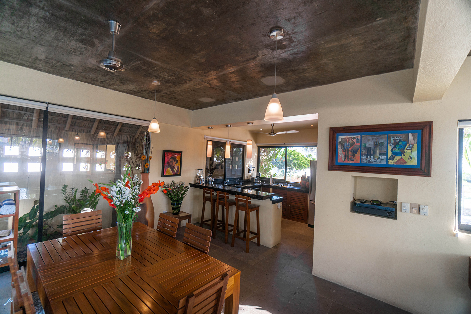 We stayed at Casa Donna a while back. What a beautiful home and location! The well appointed kitchen/dining/living areas all open via a sliding window wall to the tranquil inner courtyard/pool area. We left the large window wall doors open all night during our stay and didn't even need to turn on the AC. There's also a rooftop patio/bar area with amazing views of the ocean and sunsets to die for. We even saw whales one evening!